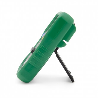 Портативный мультиметр в небьющемся корпусе из мягкого пластика. Корпус оборудован подставкой на тыльной стороне прибора для удобства чтения показаний на дисплее. Прибор предназначен для бытового применения, но может использоваться и на производстве для измерения основных электрических величин. Выбор диапазона измерения осуществляется автоматически. В режиме прозвонки при замыкании цепи срабатывает звуковая сигнализация. Мультиметр укомплектован термопарой для, работающей в диапазоне температуры от -20 до 1000 градусов Цельсия. Кнопка «HOLD» фиксирует на дисплее результат последнего измерения. Предусмотрено измерение частоты, емкости и скважинности прямоугольных импульсов. На панели прибора предусмотрен цоколь для определения коэффициента усиления биполярных транзисторов как n-p-n типа, так и p-n-p. Для питания мультиметра применяются четыре элемента формата АА. Для переноски прибора предусмотрен удобный тканевый чехол.
