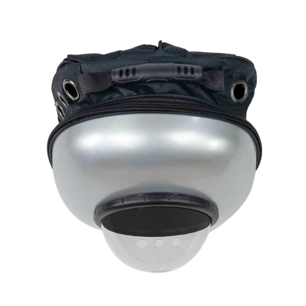 Рюкзак из прочного поликарбоната для переноски кошек и небольших собак. Круговой замок молния обеспечивает полное раскрытие рюкзака. На боковых поверхностях имеются сетчатые окошки для вентиляции. Сферический иллюминатор на крышке рюкзака обеспечивает достаточную освещенность и позволяет визуально контролировать состояние животного.